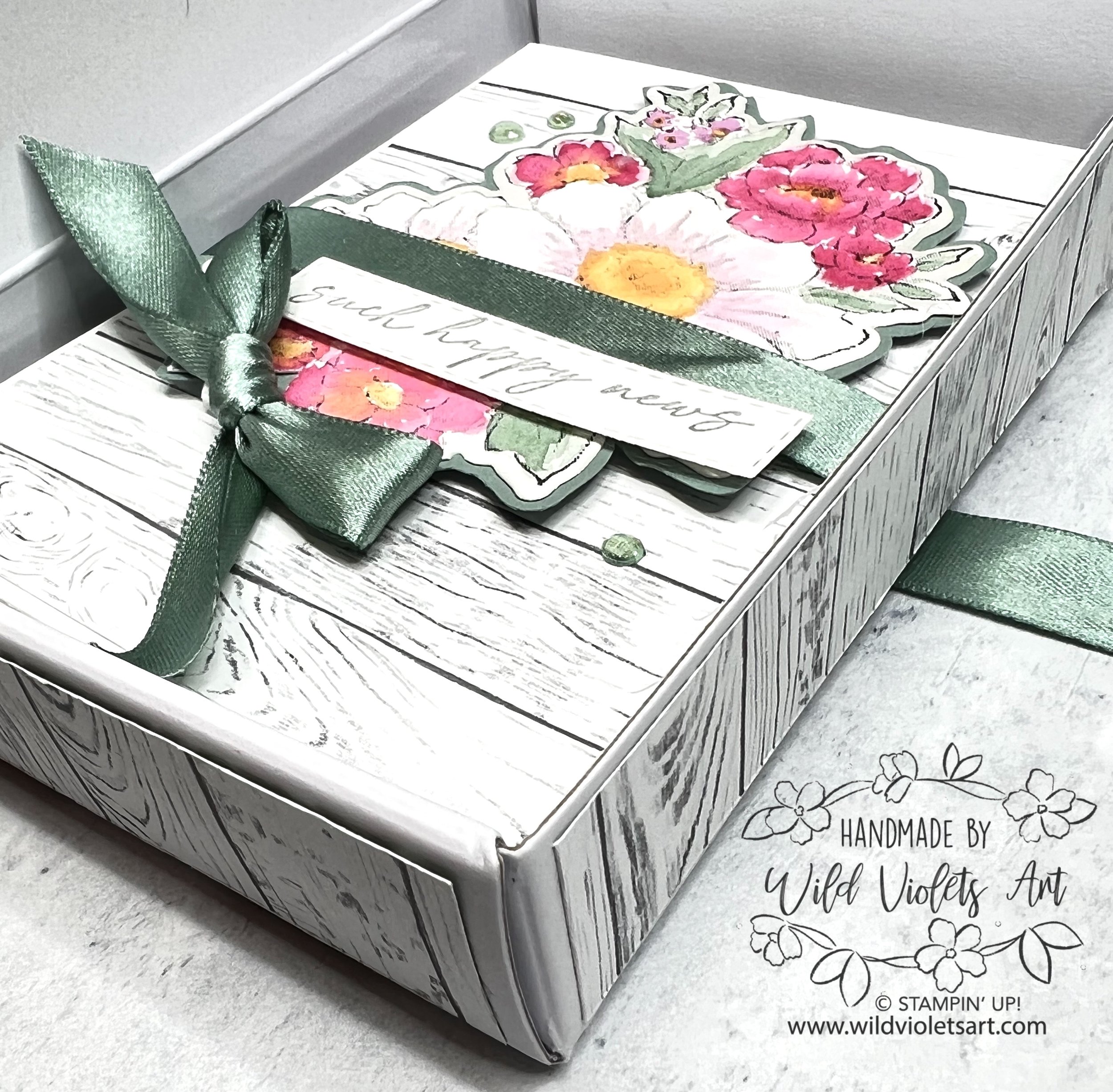 I love to make beautiful gift boxes full of cards for birthdays and holidays. This lovely box was very easy utilizing the Mini Paper Pumpkin Box from Stampin’ Up!
