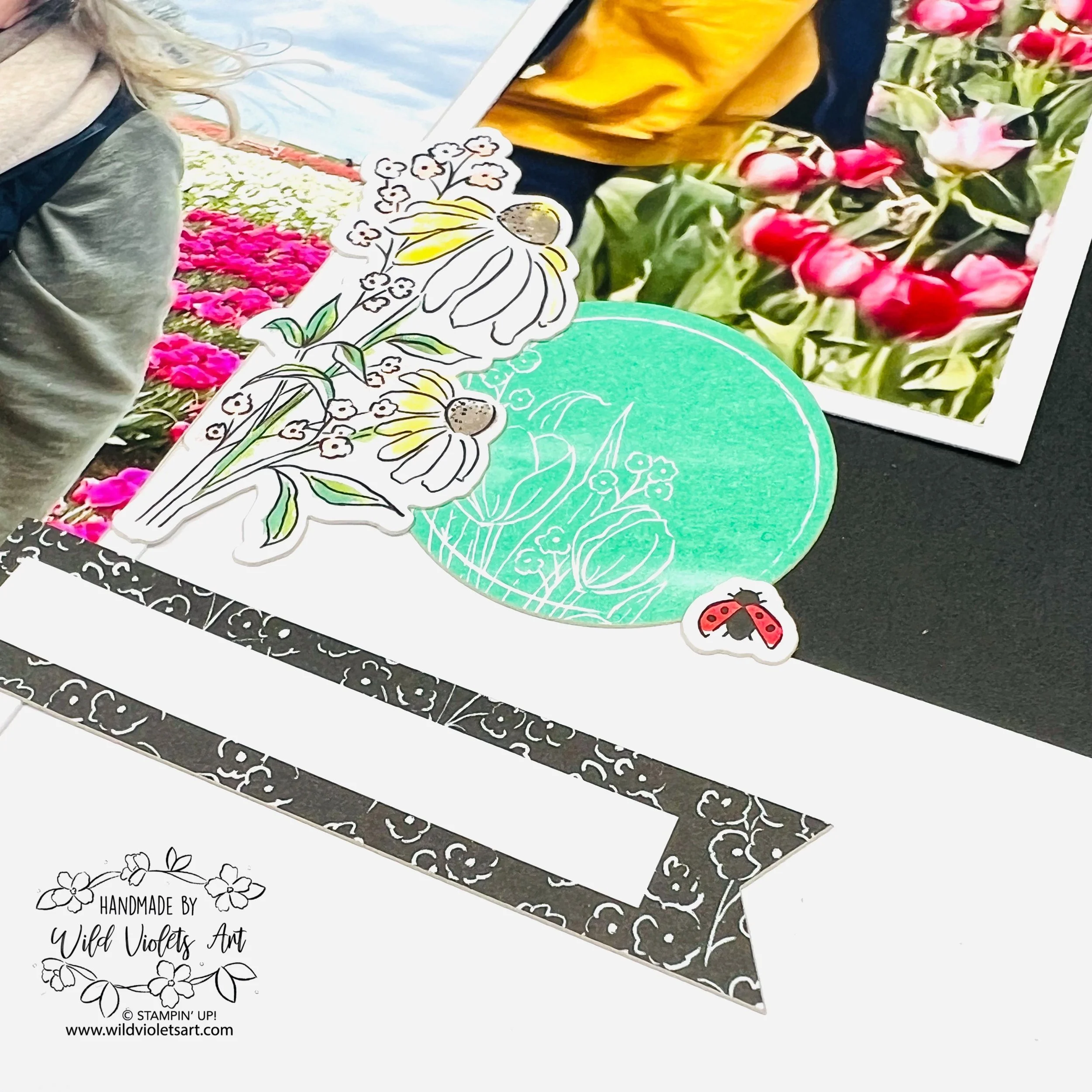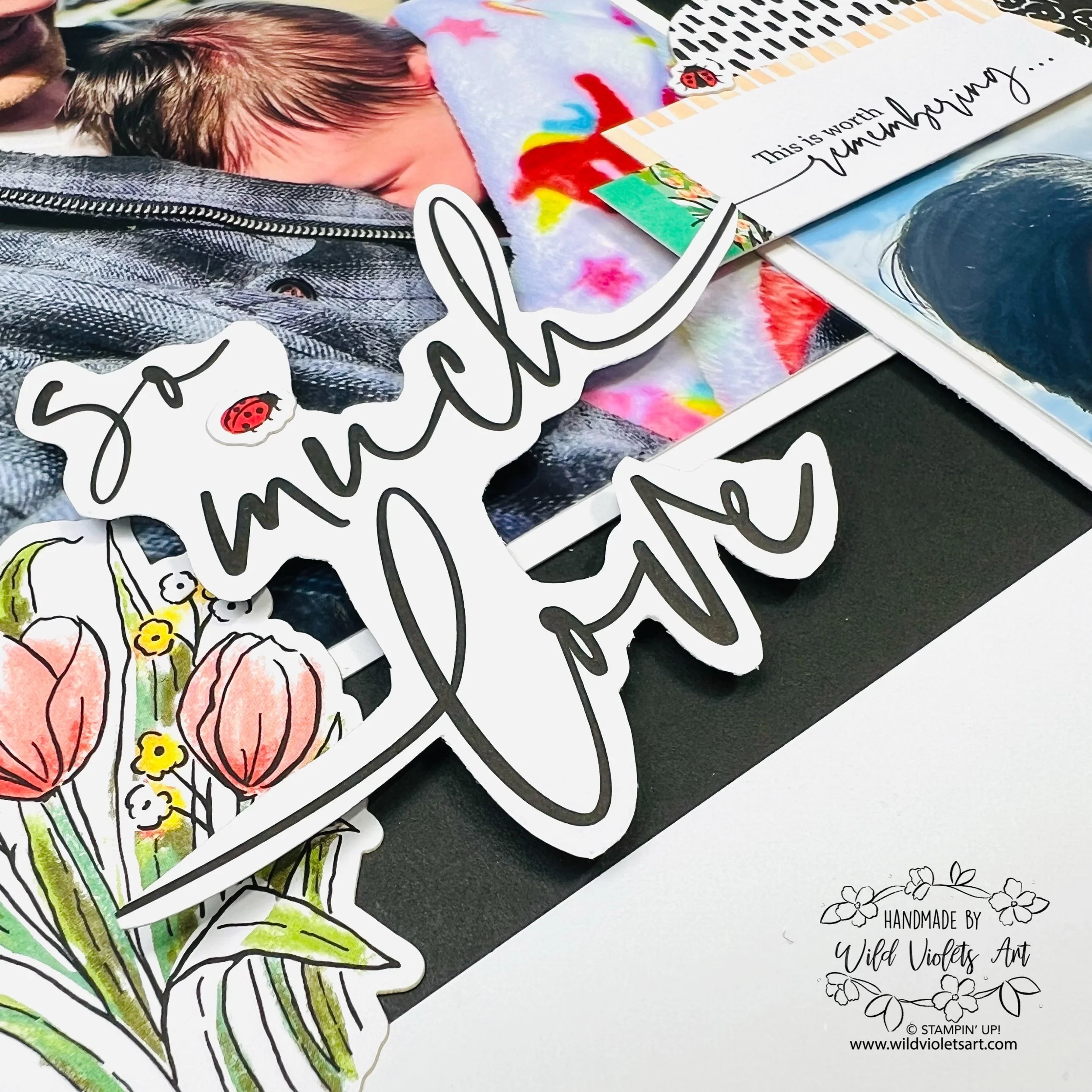 The two-page layouts beautifully capture family time and joyful moments, blending photos with florals to reflect our day at the tulip farm. I added a few sweet stickers for accents, and I'm in love with the cute ladybugs!