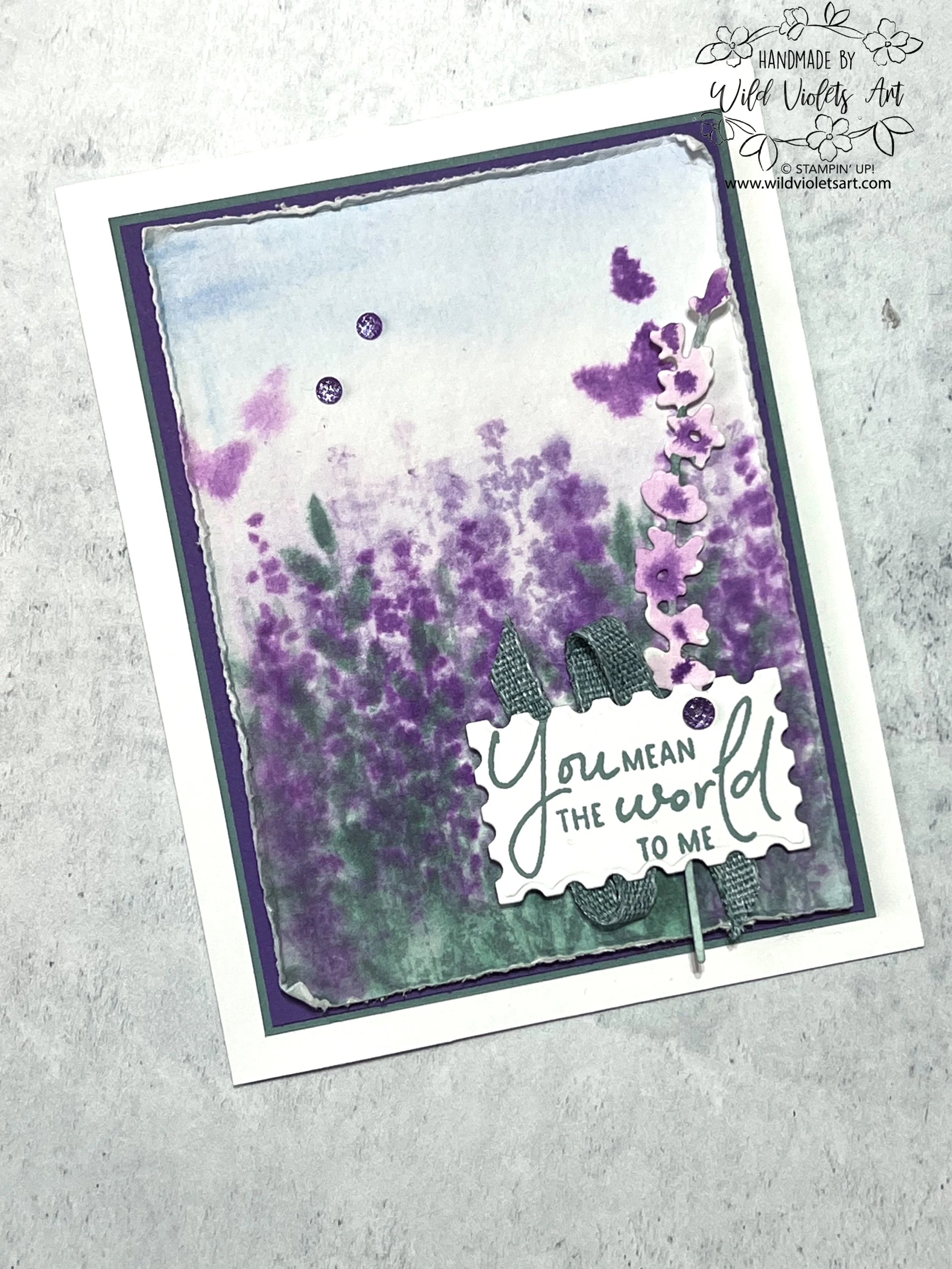 As you may know, I love my flower gardens, with lavender a long-time favorite. Mix that with Watercoloring and using the color purple… it becomes a trifecta of joy for me! Just looking at this sweet card, reminds me of the tranquility of my old California garden in the early hours of the morning, with dew glistening off tiny petals and butterflies flitting about.