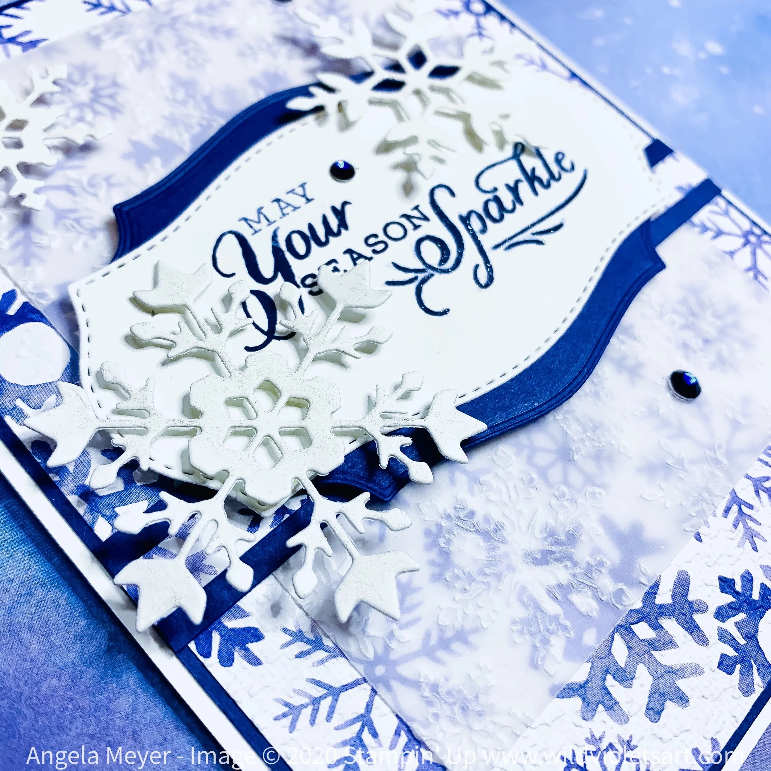 In the heat of Southern California in August, what is more refreshing that working with darling little snowflakes! The new Snowflake Splendor Suite from Stampin’ Up!’s new August - December 2020 Mini is absolutely gorgeous and makes stunning cards and paper artwork! The suite includes beautifully dainty Snowflake Wishes photopolymer stamps and So Many Snowflake dies, gorgeous Snowflake Splendor DSP and Balmy Blue Glimmer Paper, a lovely Winter Snow Embossing Folder, pretty Blue Adhesive-Backed Gems, and sweet Snowflake Splendor Ribbon. See below video for a look at the wonderful elements of this suite!